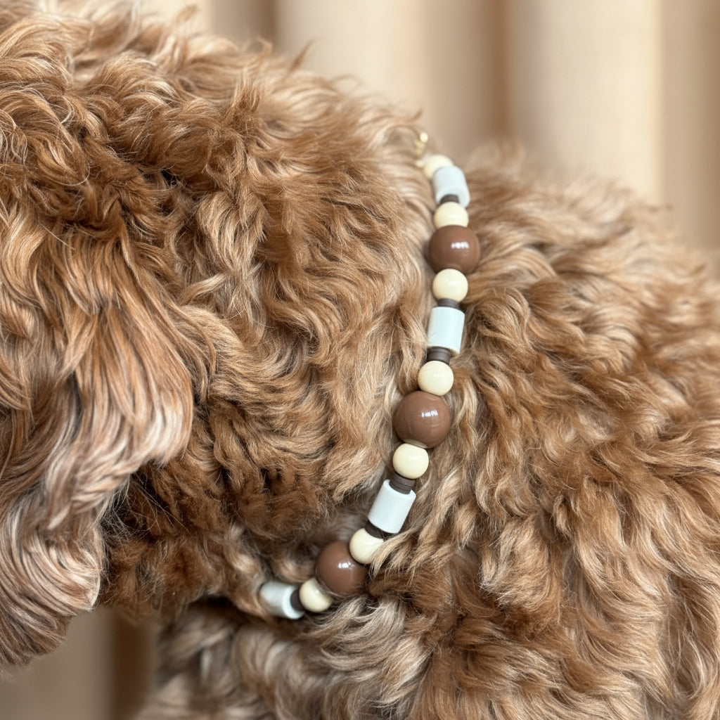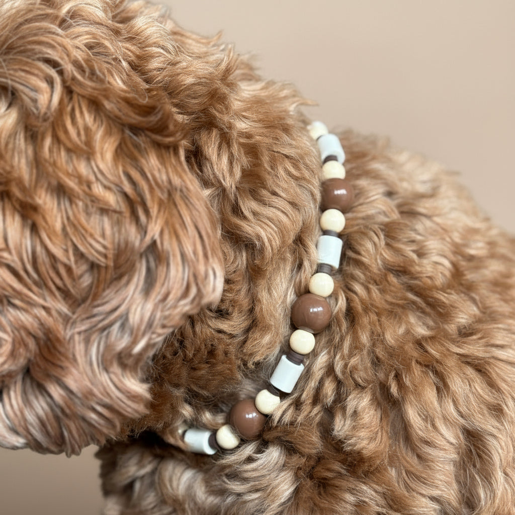 Met zijn warme bruintinten en minimalistische look past de Mokka anti-Tekenketting Mokka bij elke hond en voegt hij een subtiele touch van stijl toe aan het dagelijkse buitenleven.
