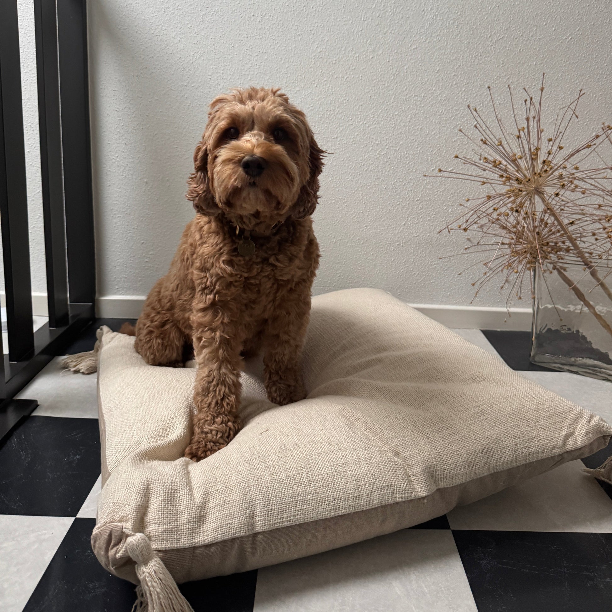 Het zachte beige kussen met speelse kwastjes is niet alleen een heerlijke ligplek, maar ook een echte interieurfavoriet. Het dikke, veerkrachtige binnenkussen biedt optimale ondersteuning voor dutjes en lange relaxmomenten voor jouw viervoeter.
