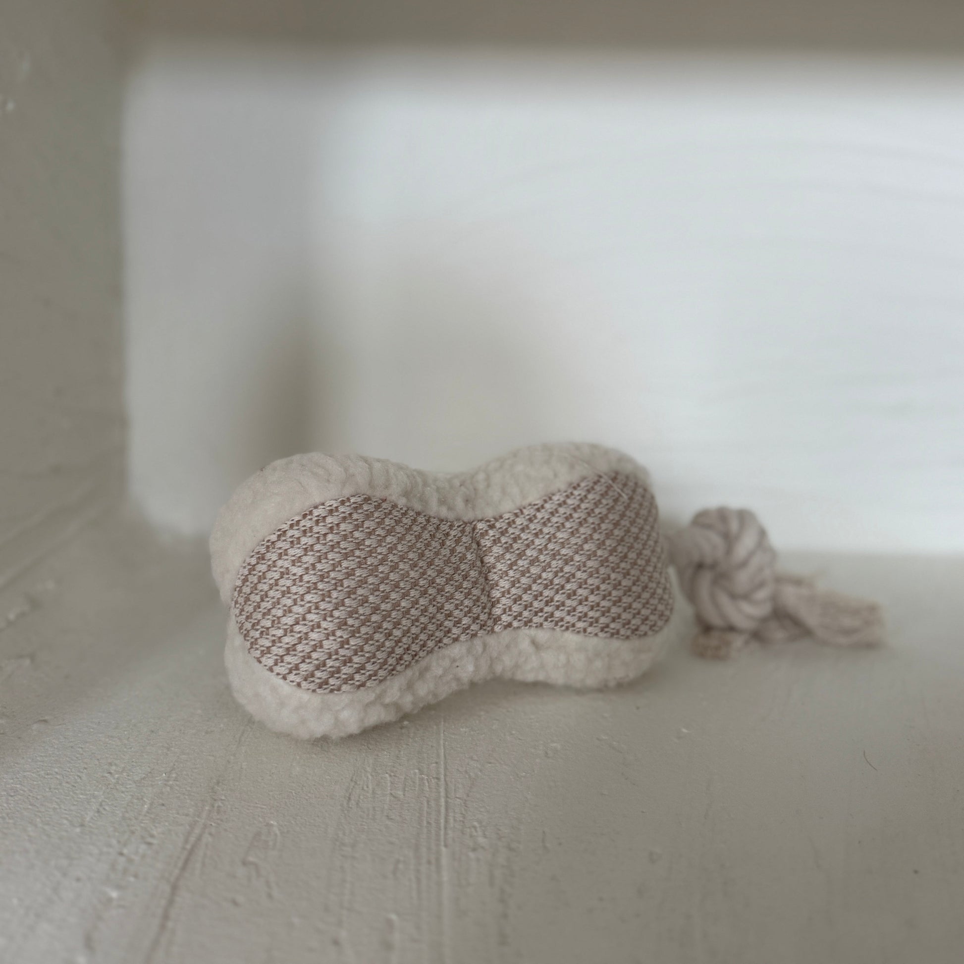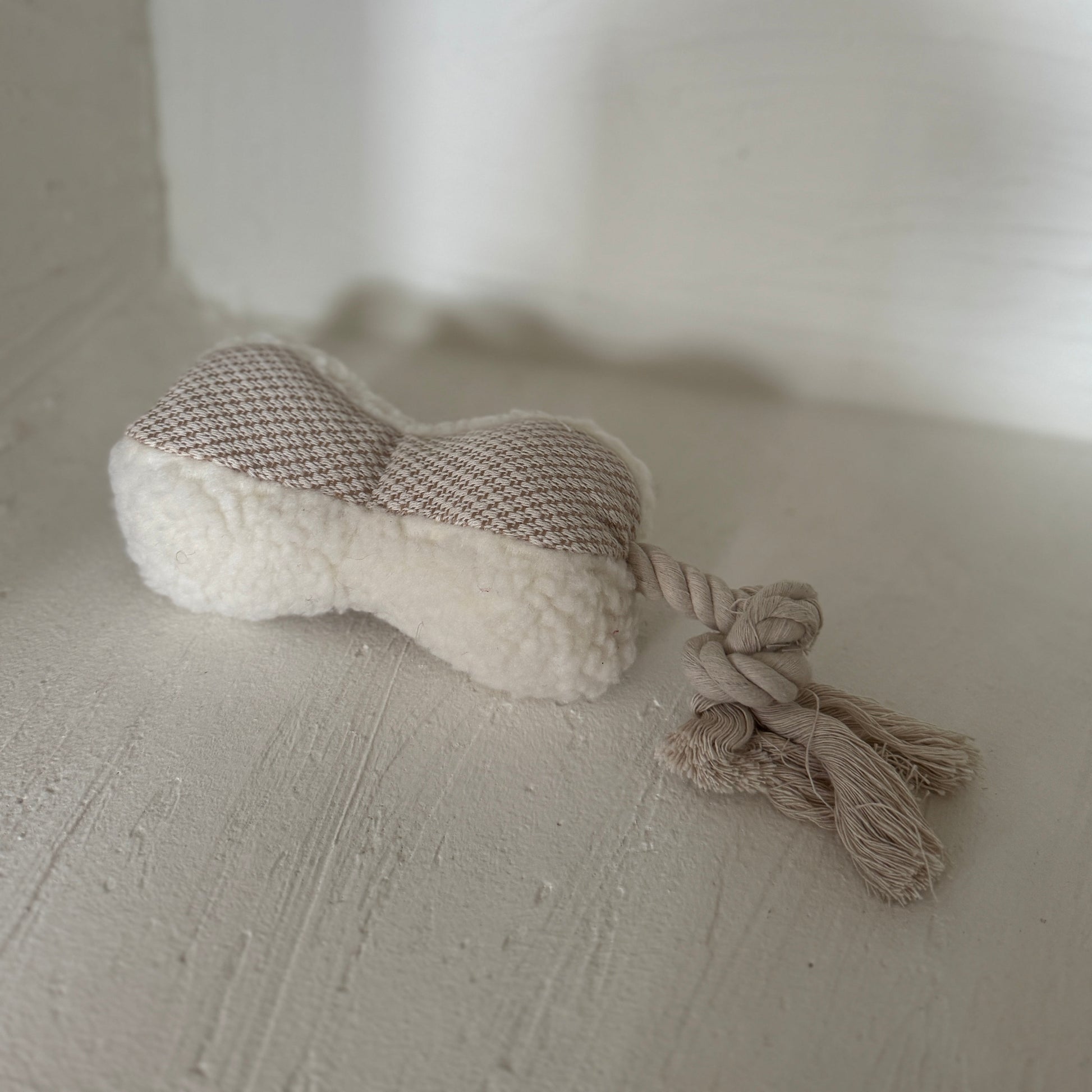 Dit hondenspeeltje combineert duurzaam jute, zacht bouclé en sterk katoenen touw. Perfect voor bijt-, trek- en knuffelmomenten. De mix van texturen maakt het extra interessant voor je hond.