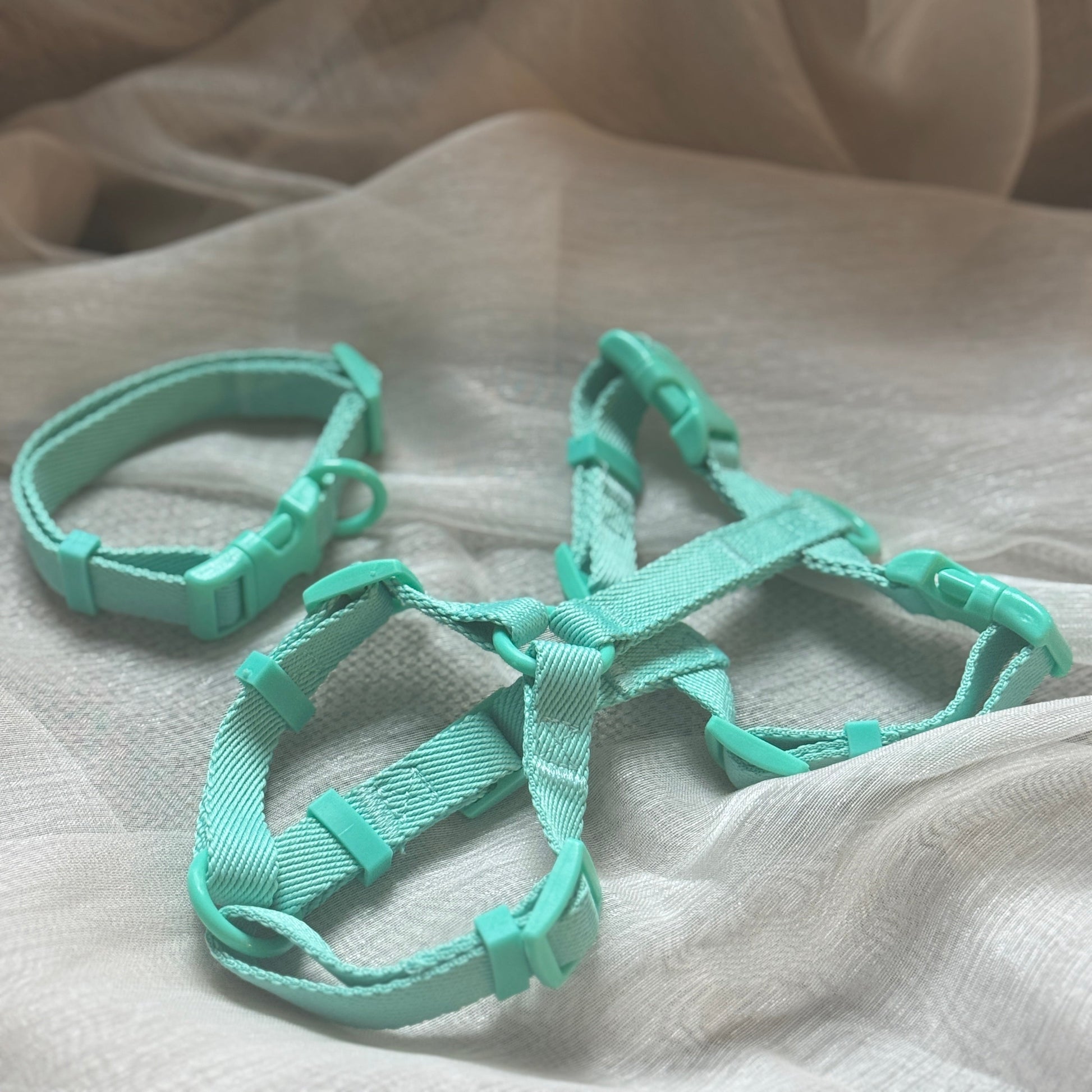 Ben jij op zoek naar het perfecte lichtgewicht tuigje, halsband en riem voor jou pup of kleine hond dan is dit setje perfect!