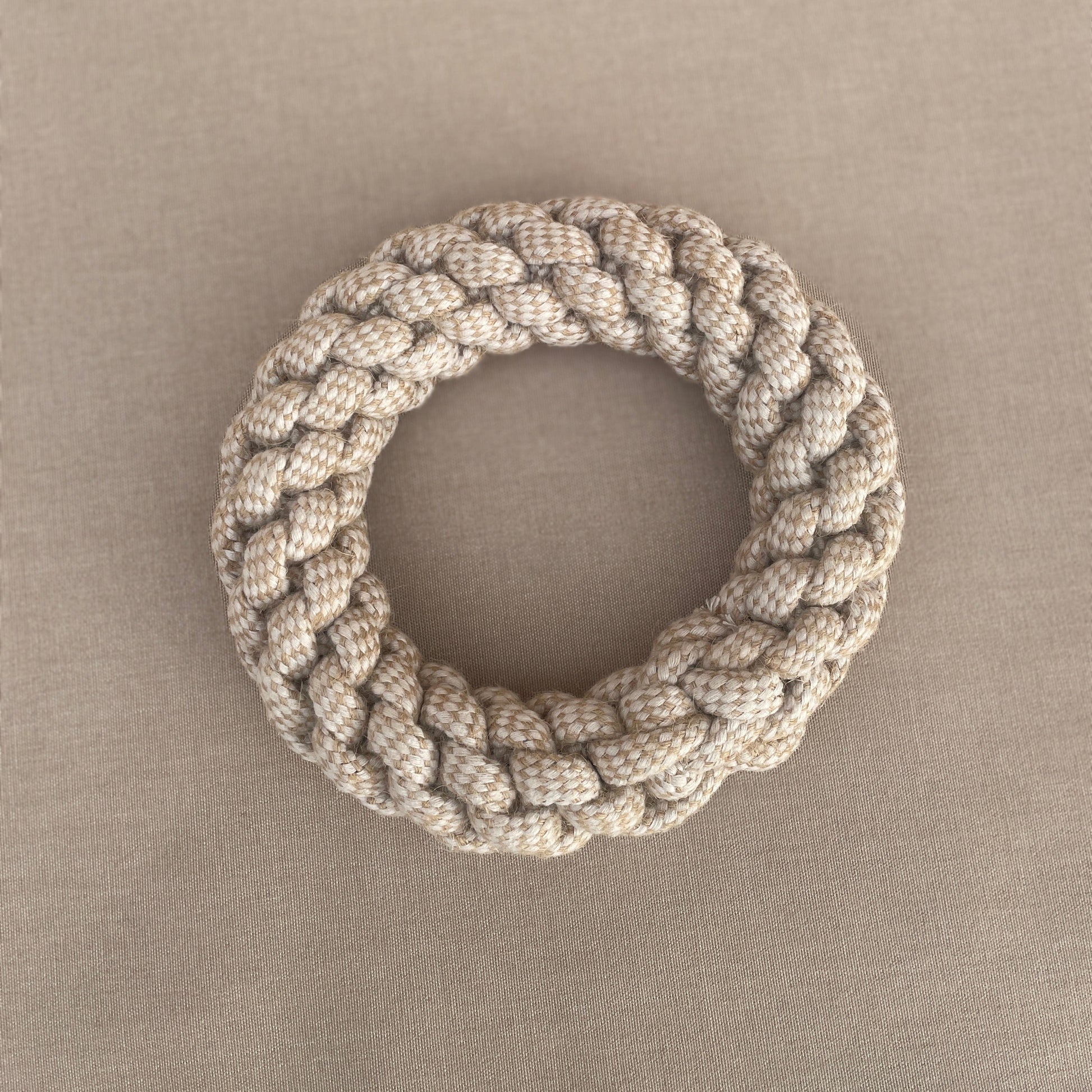 Deze stevige speelring van natuurlijk jute en katoen is perfect voor het spelen met jouw hond. Passend voor de wat grotere honden.