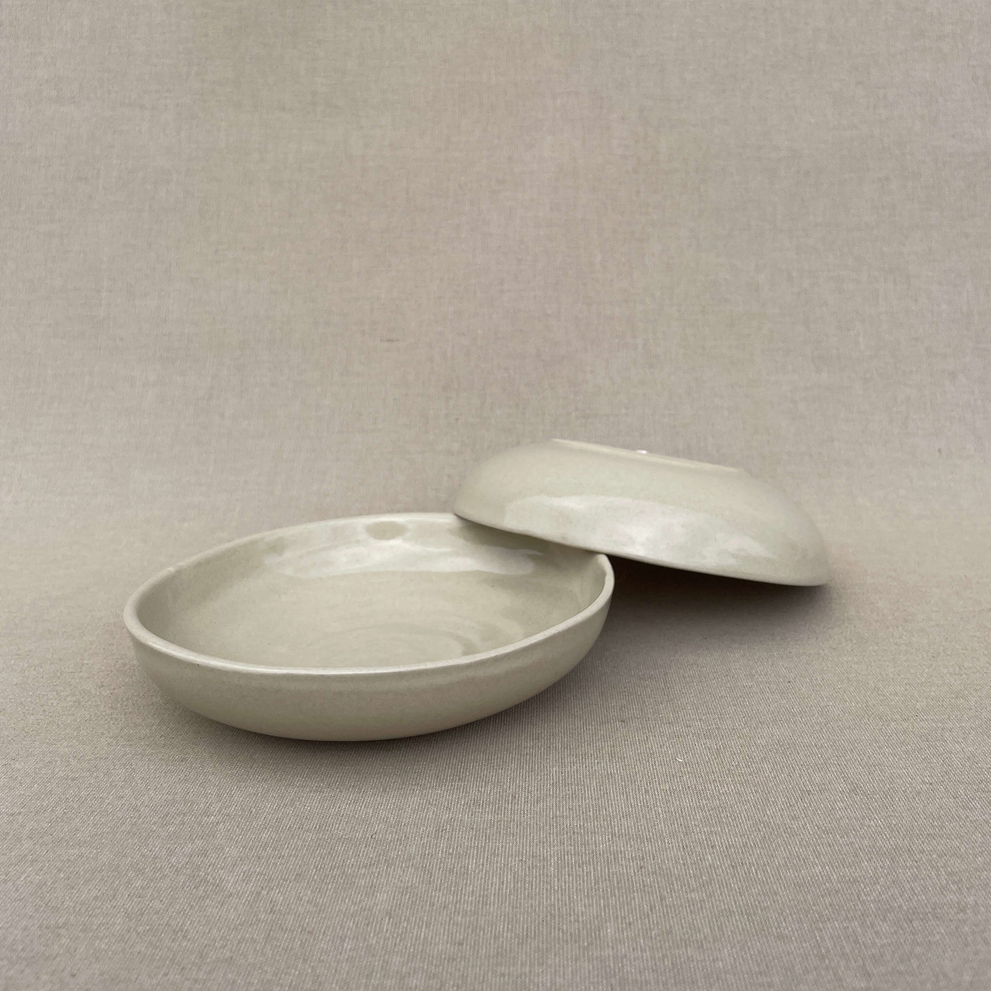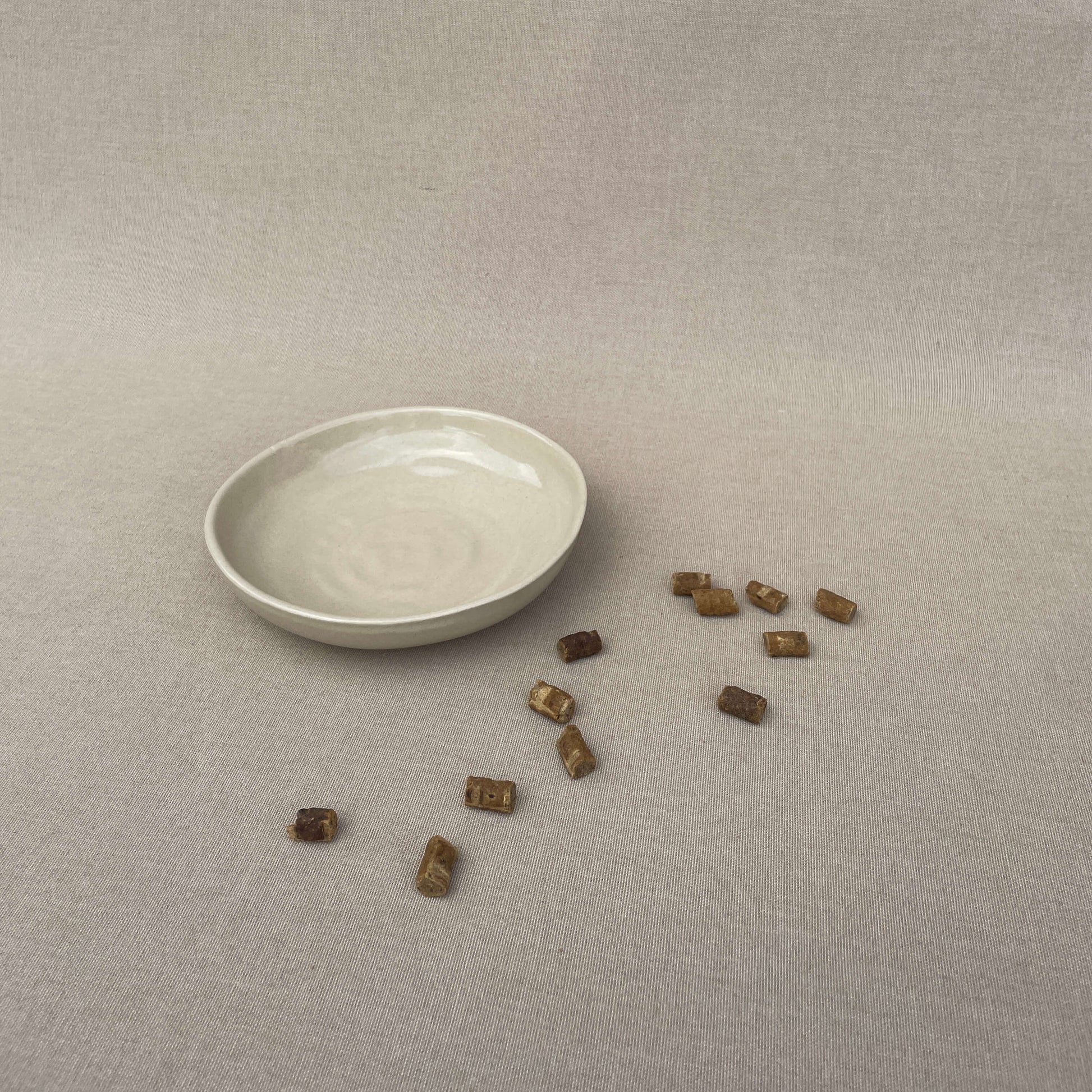 Voer- en drinkbak Luna is een handgemaakt keramieken bakje, ontworpen voor snacks, kleine porties of een frisse slok water. De subtiele glans en zachte vorm maken hem tot een stijlvolle aanvulling op elk interieur.