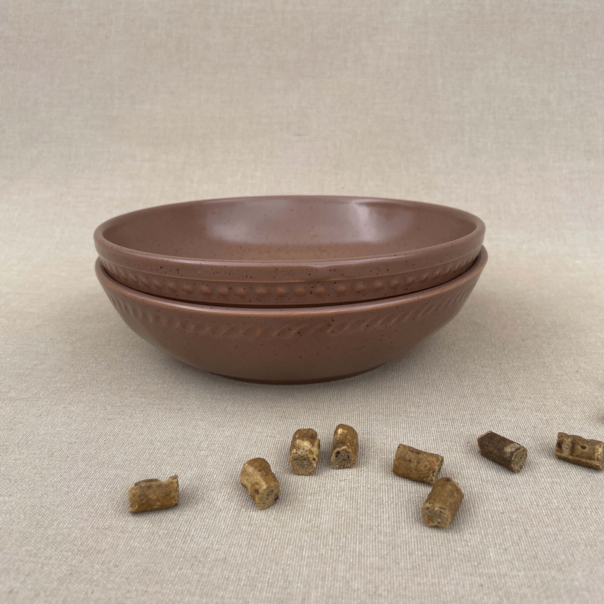 Combineer stijl en functionaliteit met voer- en drinkbak Espresso. Deze bowl is zowel vaatwasser- als magnetronbestendig, waardoor het schoonmaken en opwarmen van maaltijden makkelijk is. Deze keramieken bowl is beschikbaar in twee varianten; een leuke rand van stippen of streepjes.